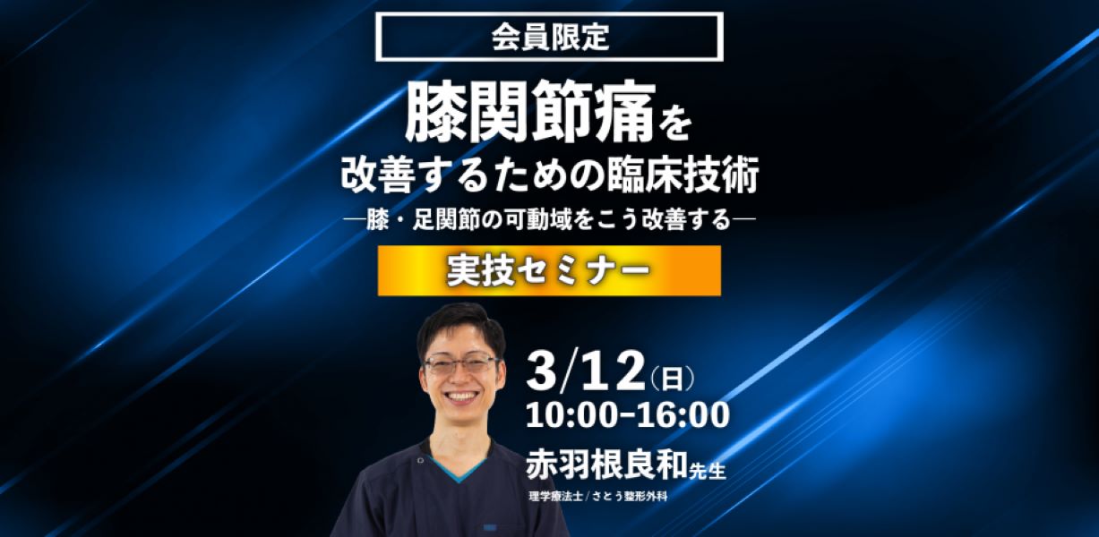 【赤羽根良和先生】膝関節痛を改善するための臨床技術 ―膝・足関節の可動域をこう改善する―(会員限定実技セミナー)